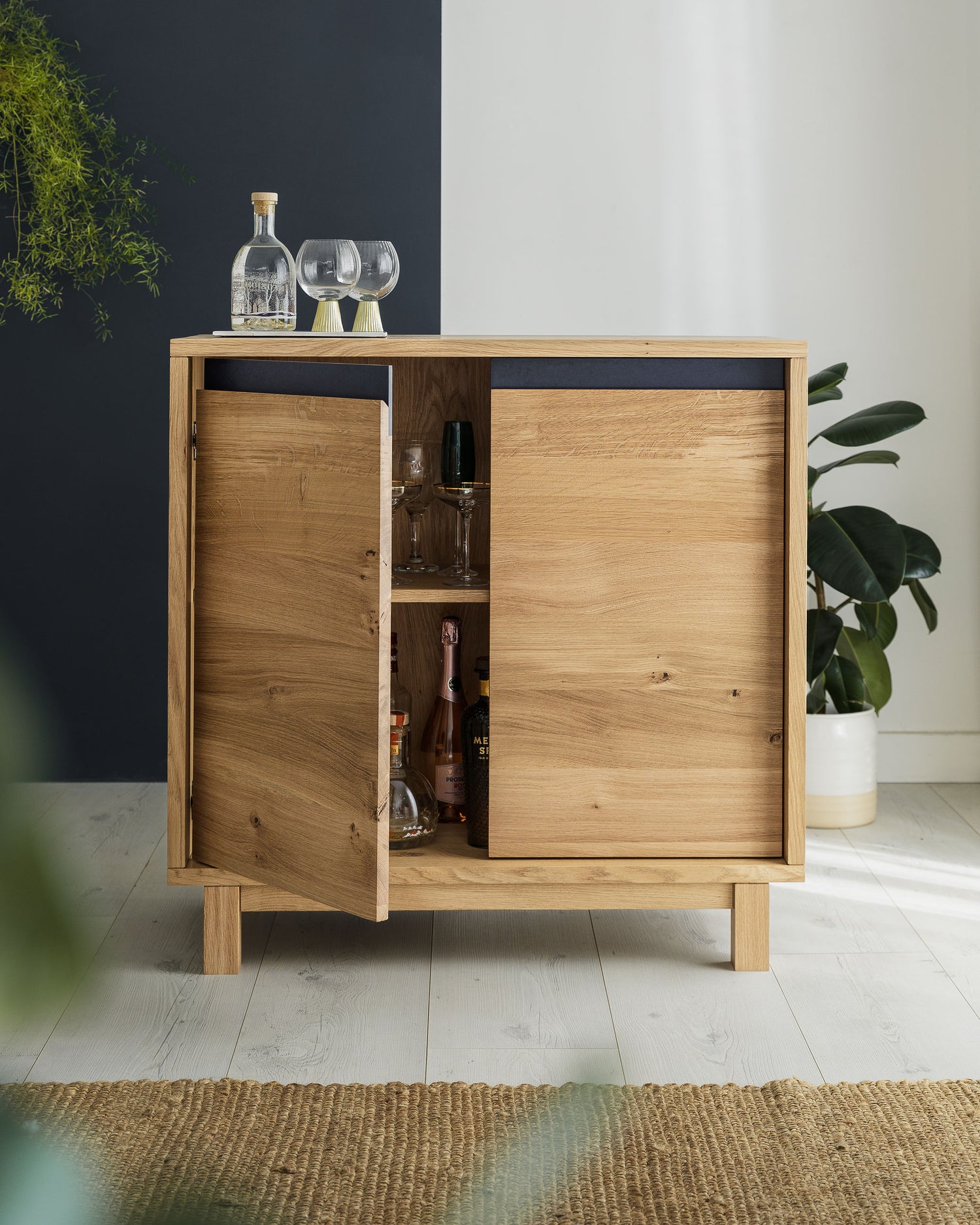 Drinks cabinet? Vanity unit? Office storage? The Agnes oak sideboard can do it all. Behind the two doors, there’s an adjustable shelf ready to fit whatever you need to stash away. We’ve finished it off with a Richlite handle — it’s tough, eco-friendly, and made from recycled paper and resin.