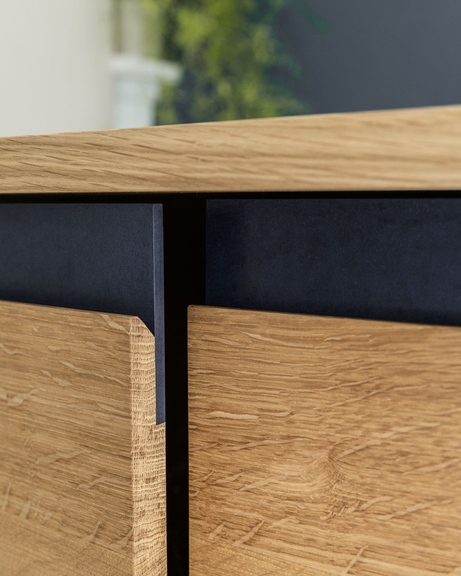 Drinks cabinet, vanity unit or office storage? The Agnes sideboard has two doors with an adjustable shelf, giving you space for whatever you need to store. The handle detail is crafted from Richlite, a durable, eco-friendly material made from recycled paper and resin. The pictured sideboard features Richlite in the shade Blue Canyon, adding a smart, modern contrast to the natural oak. Other colours are available — just ask if you’d like to customise your piece.
