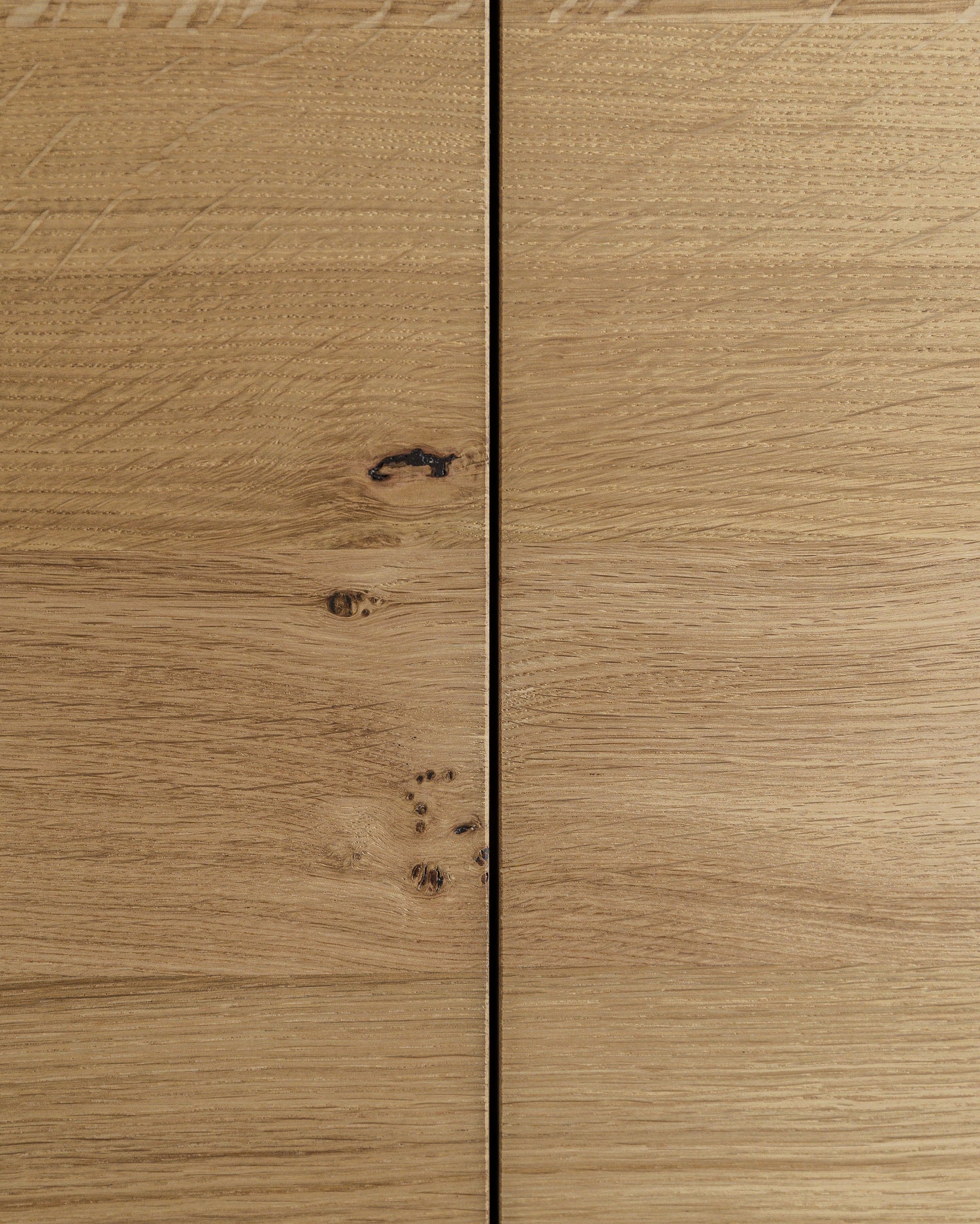 Solid light character-grade oak, full of natural grain variations