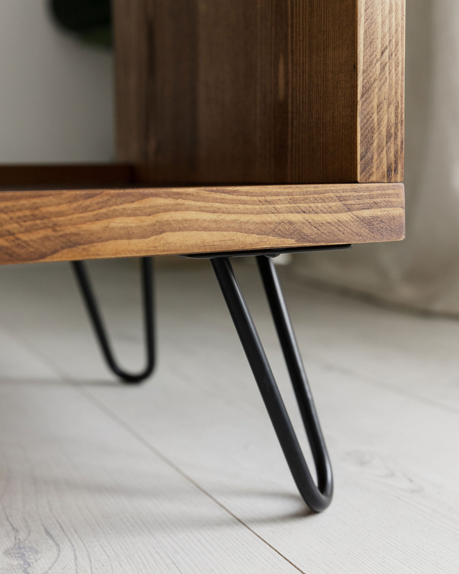 Powder coated steel hairpin legs complete the unit and keep it stable and sturdy. These hairpin legs stay true to the original hairpins designed by Henry Glass in the 1940s. The leg shape is a slimline flute and sits at a slightly reclined angle. They also come with free removable floor protectors.