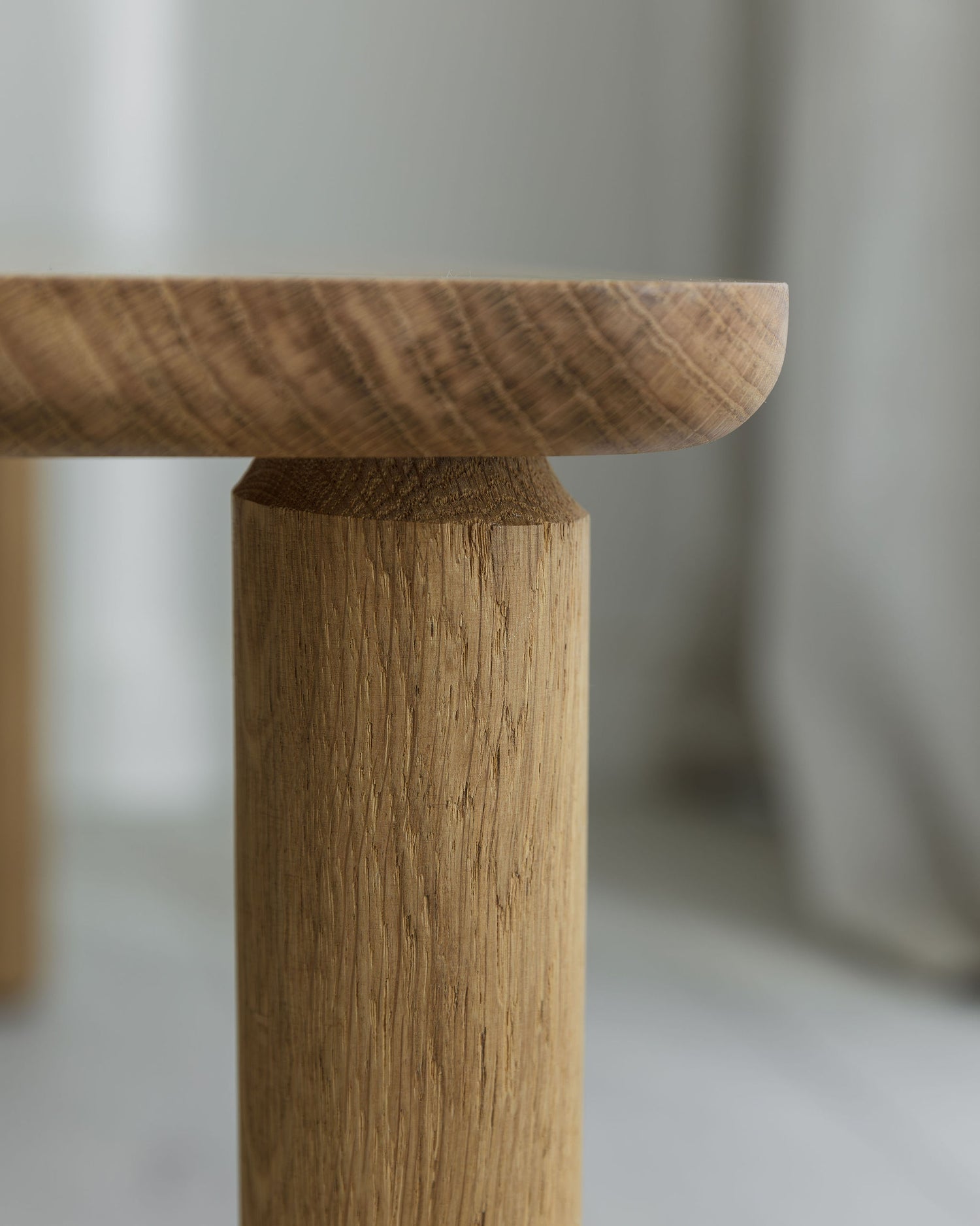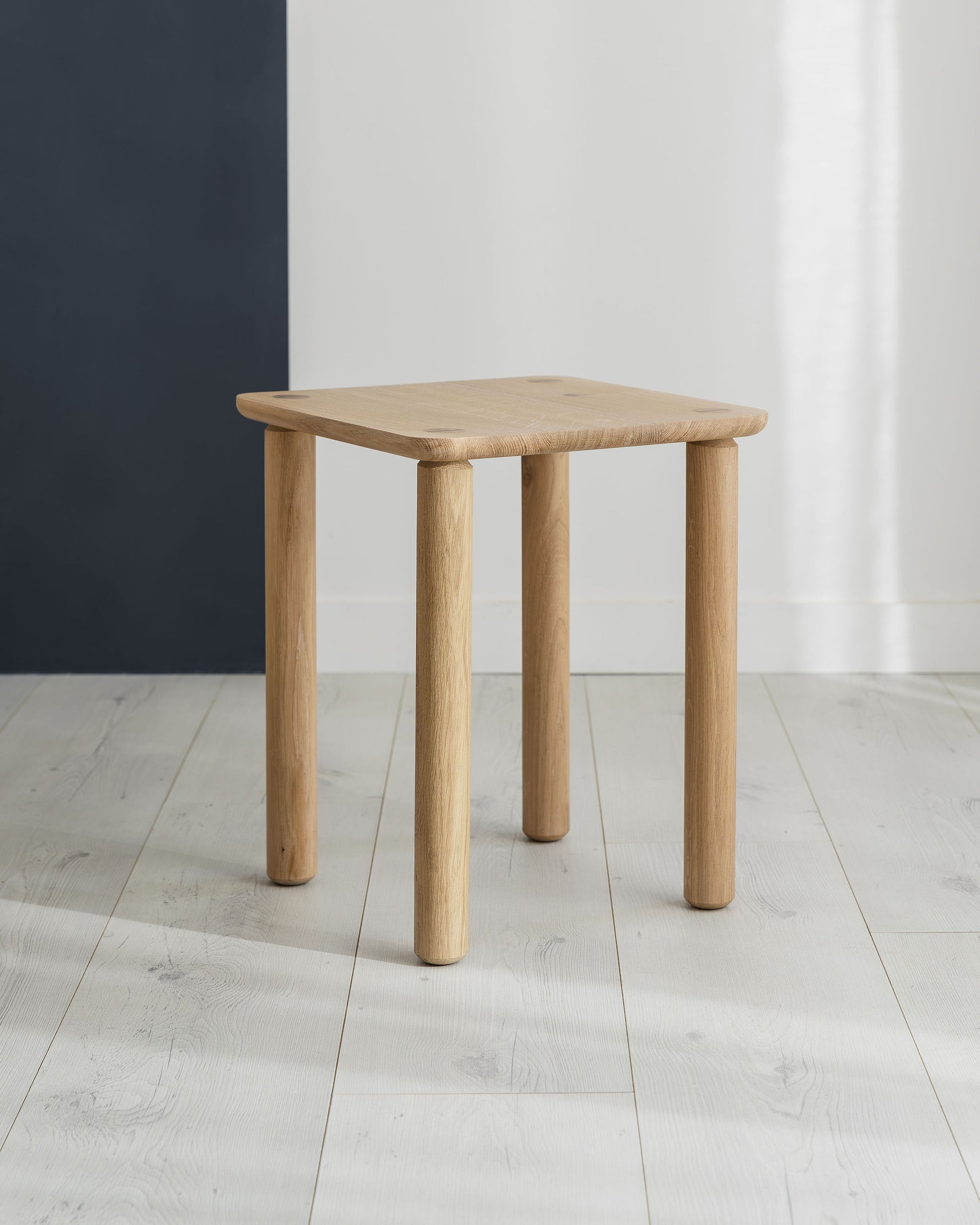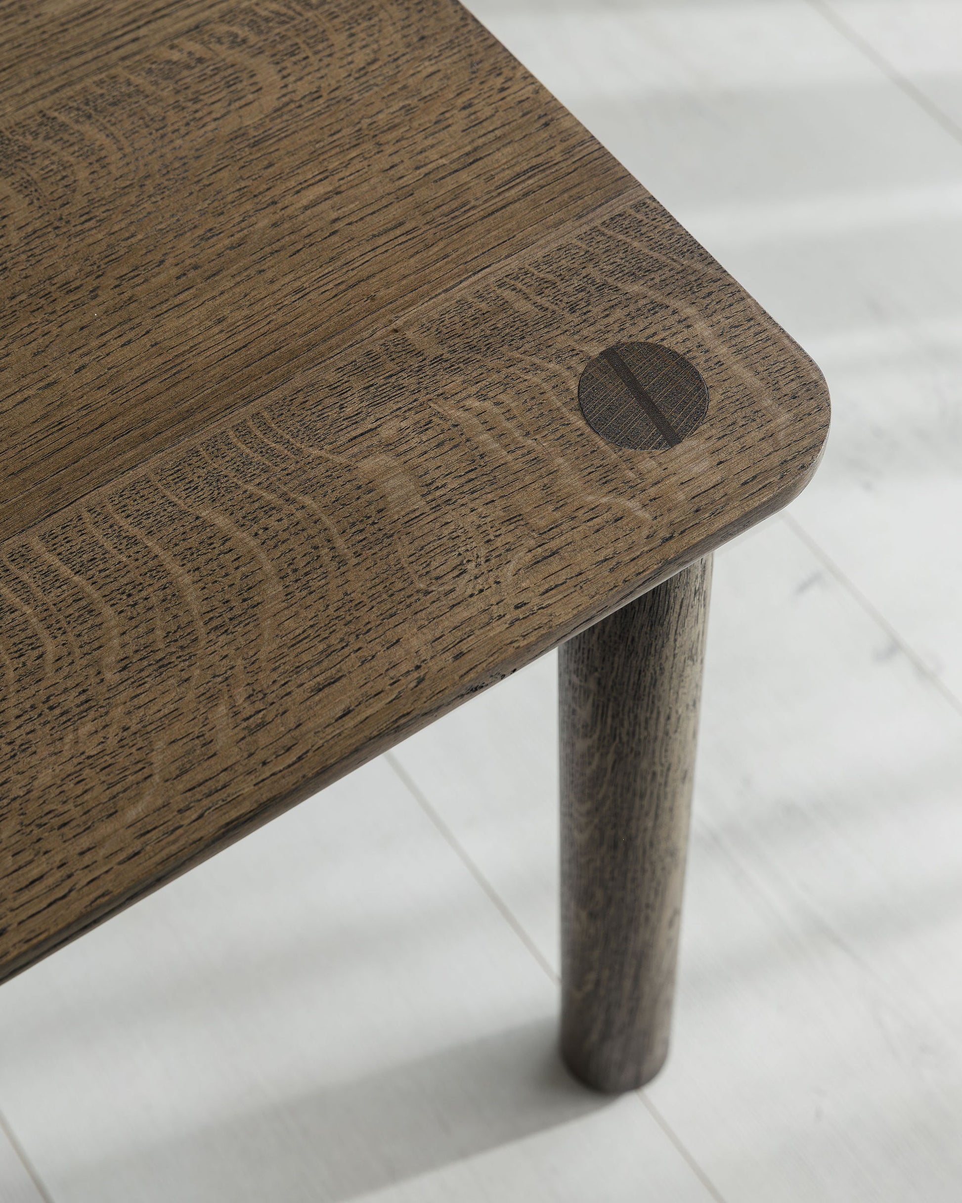 A rounded under side profile gives the top a softer feel. The top of the leg tapers into a through tenon with a slightly asymmetrical profile blending traditional woodworking technique with modern design.